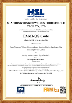 莎士比亞說:“無暇的名譽是世界上最純粹的珍寶,失去了良知、名譽,人類不過是一些鍍金的糞土,染色的泥塊?!币粋€企業(yè),一個品牌,若要永遠屹立不倒,被人們所認可,首先應(yīng)得到社會的認可,客戶的認可,員工的認可,同泰維潤公司從一九九五年五月十八日成立,20年間同泰維潤公司從一家小作坊,到現(xiàn)在中國食品防腐劑十強企業(yè),國家級高新技術(shù)企業(yè)靠的就是良知和名譽 同泰維潤公司遵循用良知做事,做良心企業(yè),做良心產(chǎn)品這一宗旨。“創(chuàng)世界著名品牌、造世界一流產(chǎn)品”是公司崇高的經(jīng)營理念,為達到這一理念完全落地,我們和“中國農(nóng)業(yè)大學”、"浙江大學"、“山東農(nóng)業(yè)大學”、“青島科技大學”、“棗莊職業(yè)學院”合作建立了政、產(chǎn)、學、研實驗室。已獲得發(fā)明專利6項,實用新型專利30項,計算機著作權(quán)5項,外觀包裝專利6項,公司產(chǎn)品已經(jīng)遠銷歐洲、俄羅斯、東南亞、南美洲、非洲等53個國家,370多個客戶,公司年產(chǎn)值已突破1.7億元。